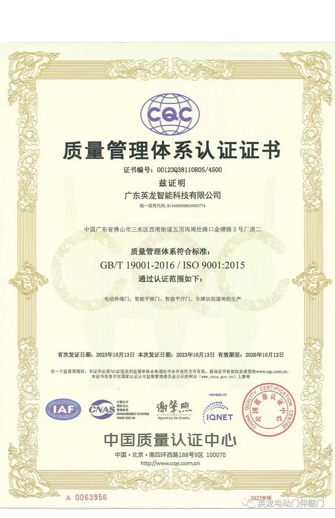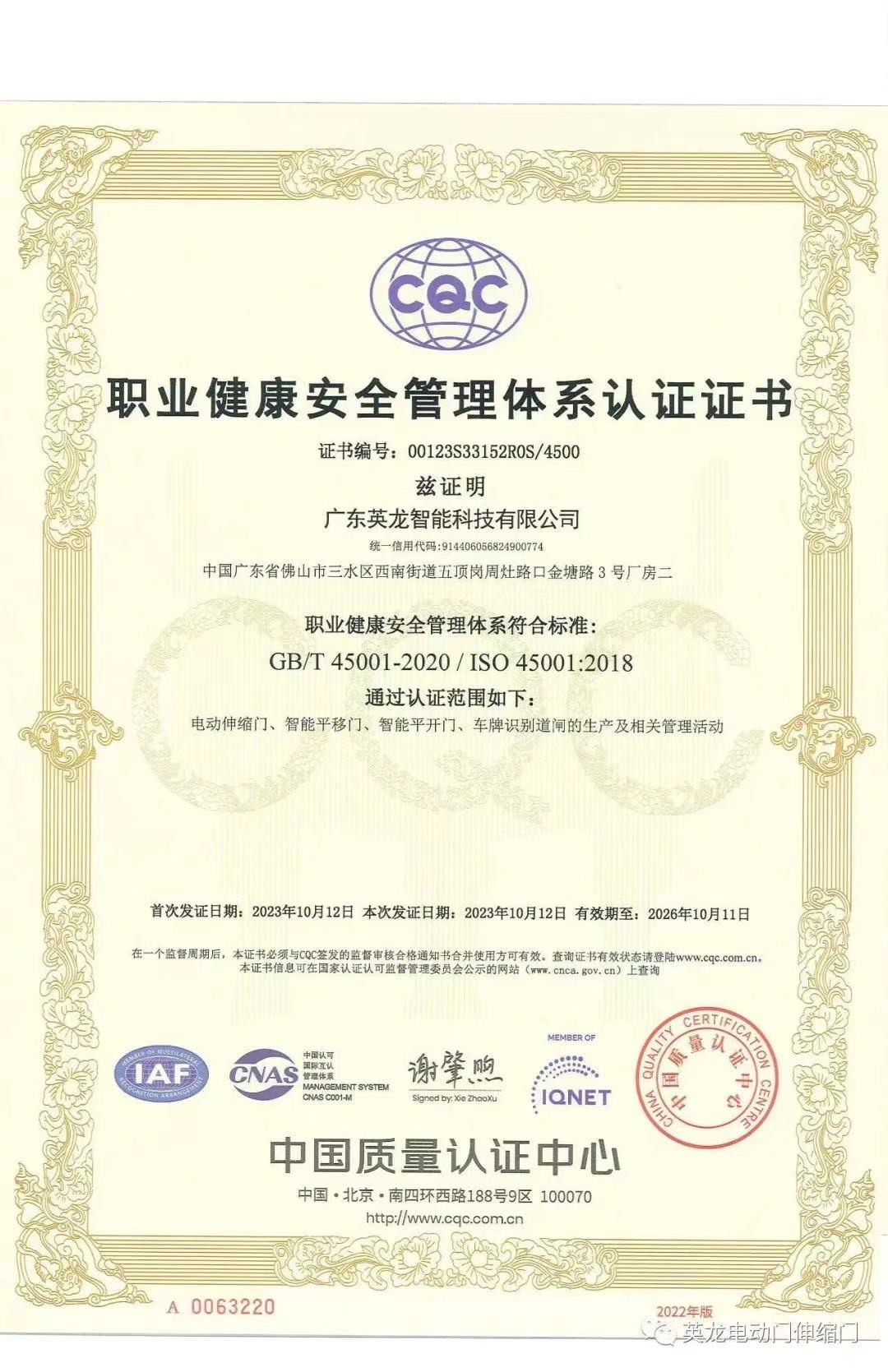 網(wǎng) 址:www.shuangsha.com.cn廣東英龍公司榮獲CQC三體系認(rèn)證
