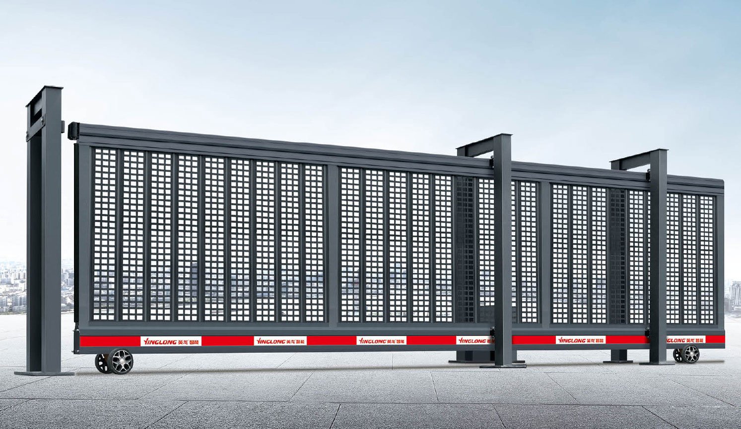 3.安裝時在地面拉一條直線,兩個龍門架底座鐵板上的V型口對齊直線。